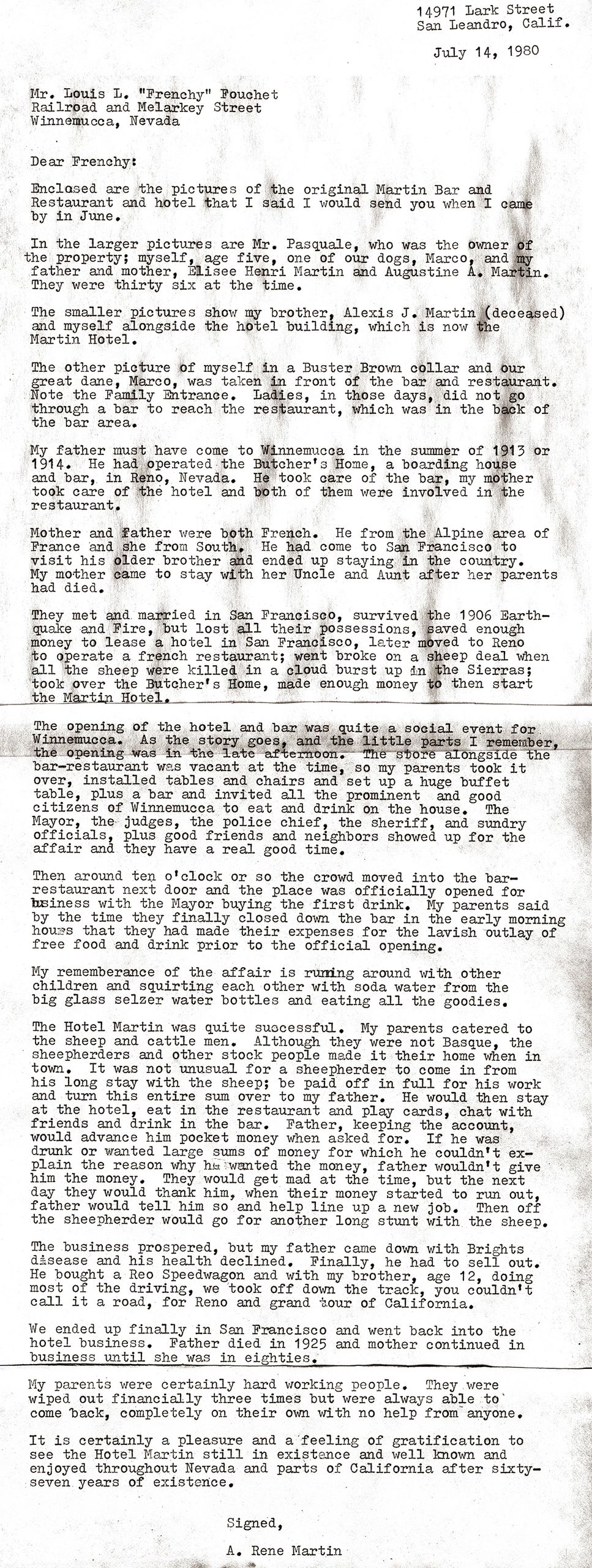 The Martin Hotel continued as a hotel and restaurant after Augustine Martin passed. It was owned and managed by Basque families stretching into the 1970's including: Yrueta, Forgonnes, Bilboa, and Rosie Uriguen. Many of our recipes originated with Rosie, including our famous salad dressing, which we now manufacture and distribute.